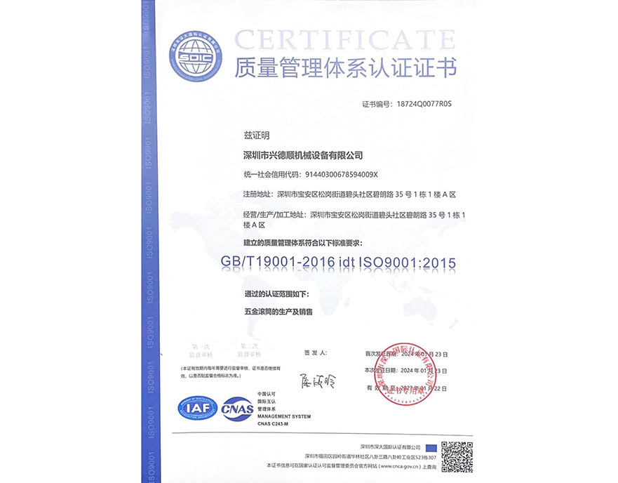 質(zhì)量管理體系認(rèn)證證書(shū)
